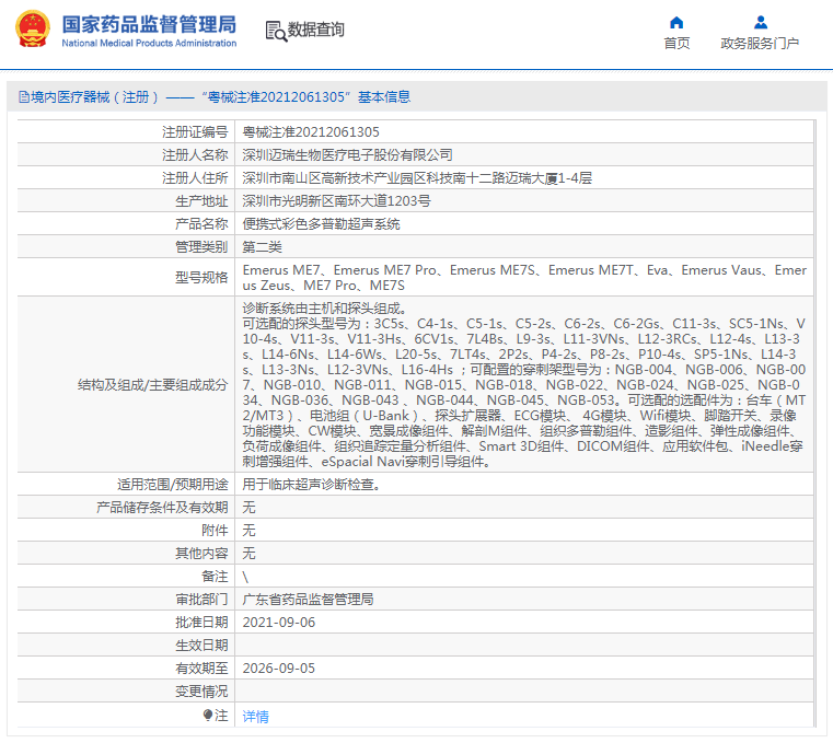 可选配的探头型号为:3C5s、C4-1s、C5-1s、C5-2s、C6-2s、C6-2Gs、C11-3s、SC5-1Ns、V10-4s、V11-3s、V11-3Hs、6CV1s、7L4Bs、L9-3s、L11-3VNs、L12-3RCs、L12-4s、L13-3s、L14-6Ns、L14-6Ws、L20-5s、7LT4s、2P2s、P4-2s、P8-2s、P10-4s、SP5-1Ns、L14-3s、L13-3Ns、L12-3VNs、L16-4Hs ;可配置的穿刺架型号为:NGB-004、NGB-006、NGB-007、NGB-010、NGB-011、NGB-015、NGB-018、NGB-022、NGB-024、NGB-025、NGB-034、NGB-036、NGB-043 、NGB-044、NGB-045、NGB-053。可选配的选配件为:台车(MT2/MT3)、电池组(U-Bank)、探头扩展器、ECG模块、 4G模块、Wifi模块、脚踏开关、录像功能模块、CW模块、宽景成像组件、解剖M组件、组织多普勒组件、造影组件、弹性成像组件、负荷成像组件、组织追踪定量分析组件、Smart 3D组件、DICOM组件、应用软件包、iNeedle穿刺增强组件、eSpacial Navi穿刺引导组件。