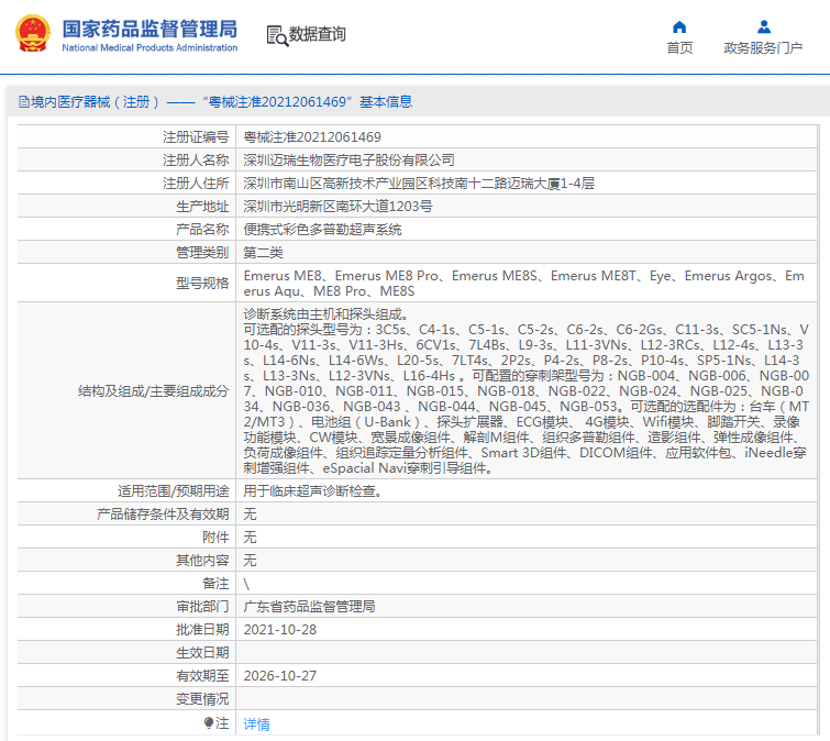 可选配的探头型号为:3C5s、C4-1s、C5-1s、C5-2s、C6-2s、C6-2Gs、C11-3s、SC5-1Ns、V10-4s、V11-3s、V11-3Hs、6CV1s、7L4Bs、L9-3s、L11-3VNs、L12-3RCs、L12-4s、L13-3s、L14-6Ns、L14-6Ws、L20-5s、7LT4s、2P2s、P4-2s、P8-2s、P10-4s、SP5-1Ns、L14-3s、L13-3Ns、L12-3VNs、L16-4Hs 。可配置的穿刺架型号为:NGB-004、NGB-006、NGB-007、NGB-010、NGB-011、NGB-015、NGB-018、NGB-022、NGB-024、NGB-025、NGB-034、NGB-036、NGB-043 、NGB-044、NGB-045、NGB-053。可选配的选配件为:台车(MT2/MT3)、电池组(U-Bank)、探头扩展器、ECG模块、 4G模块、Wifi模块、脚踏开关、录像功能模块、CW模块、宽景成像组件、解剖M组件、组织多普勒组件、造影组件、弹性成像组件、负荷成像组件、组织追踪定量分析组件、Smart 3D组件、DICOM组件、应用软件包、iNeedle穿刺增强组件、eSpacial Navi穿刺引导组件。
